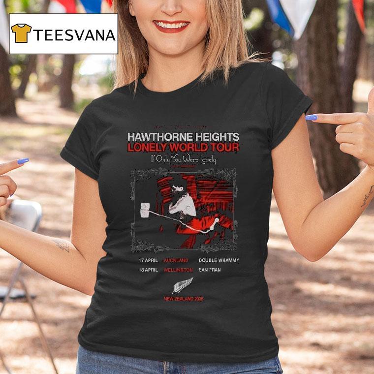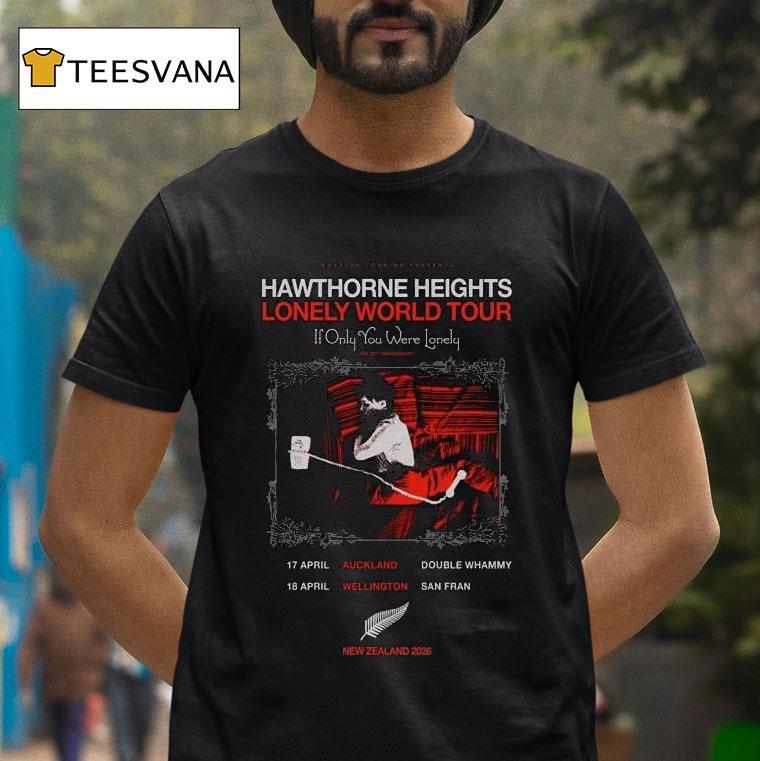 Casual comfort, chic look with Hawthorne Heights Apr 17 2026 Auckland And Apr 18 2026 Wellington Nz Shirt, as the calendar turns to April 17, 2026, fans of the beloved emo band Hawthorne Heights eagerly anticipate their upcoming show in Auckland, New Zealand. The following day, the group will take the stage in Wellington, with fans proudly donning their tour shirts emblazoned with the date.