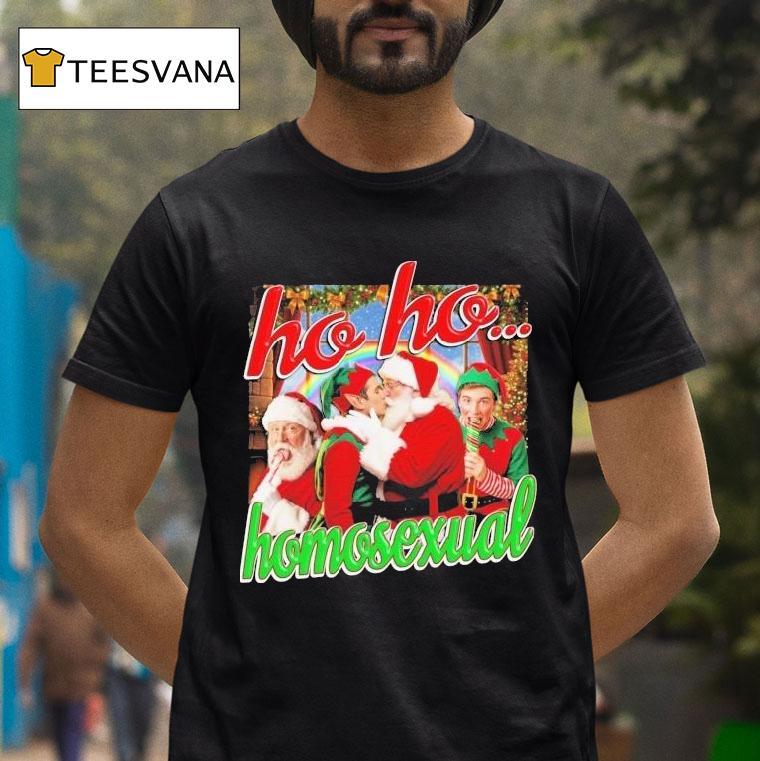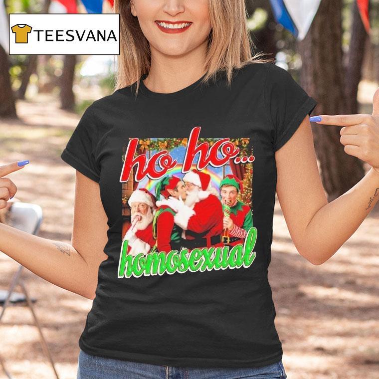 Chic minimalism, always with Ho Ho Homosexual Santa And Elf Kiss Merry Christmas Shirt, welcome to a holiday season that embraces love in all its forms! Celebrate Christmas with our festive Ho Ho Homosexual Santa and Elf Kiss Merry Christmas shirt, spreading joy and acceptance with this unique and playful design. Share the love this holiday season and make a statement with our shirt.