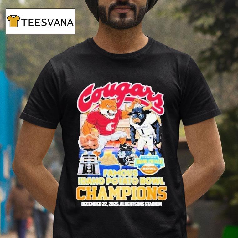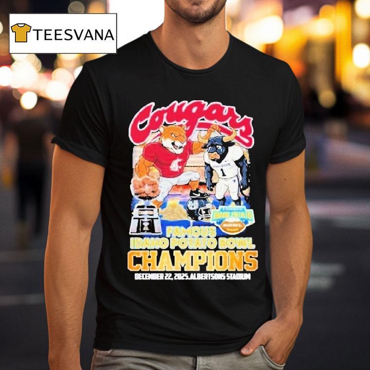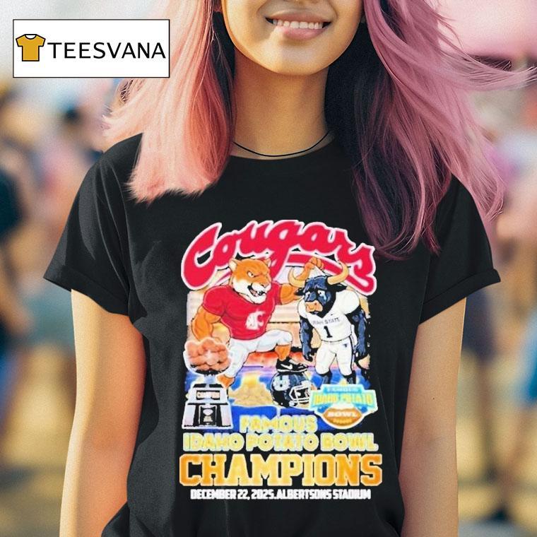 Instant style upgrade with Houston Cougars Football Champions Famous Idaho Potato Bowl Championship Mascot December 22 2025 Albertsons Stadium Shirt, on December 22, 2025, the Houston Cougars football team made history as they dominated the Famous Idaho Potato Bowl championship game. The team’s mascot proudly donned a shirt commemorating their victory as they celebrated in front of a roaring crowd at Albertsons Stadium.