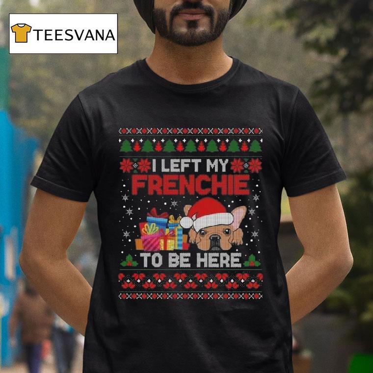 Your fashion canvas with I Left My Frenchie To Be Here Ugly Christmas 2025 Shirt, as I stepped into the cozy coffee shop, I couldn’t help but laugh at my reflection in the glass window. My Frenchie’s pleading eyes as I left him to be here wearing my new Ugly Christmas 2025 Shirt were too much to handle. But I knew it was worth it.