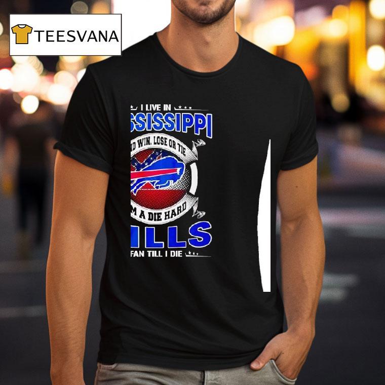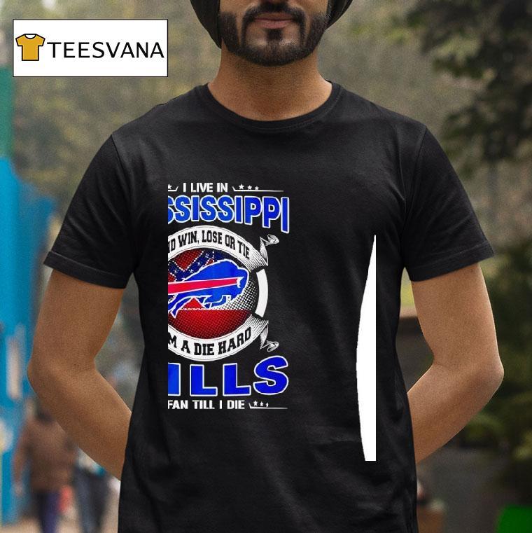 Effortless fashion flair with I Live In Mississippi And Win Lose Or Tie I’m A Die Hard Bills Fan Till I Die Shirt, as a proud resident of Mississippi and a die-hard Bills fan, one thing is for sure: my loyalty to the team will never fade, no matter the outcome. Through every win, loss, or tie, I proudly don my “Till I Die” shirt, showing my undying support for the Buffalo Bills.