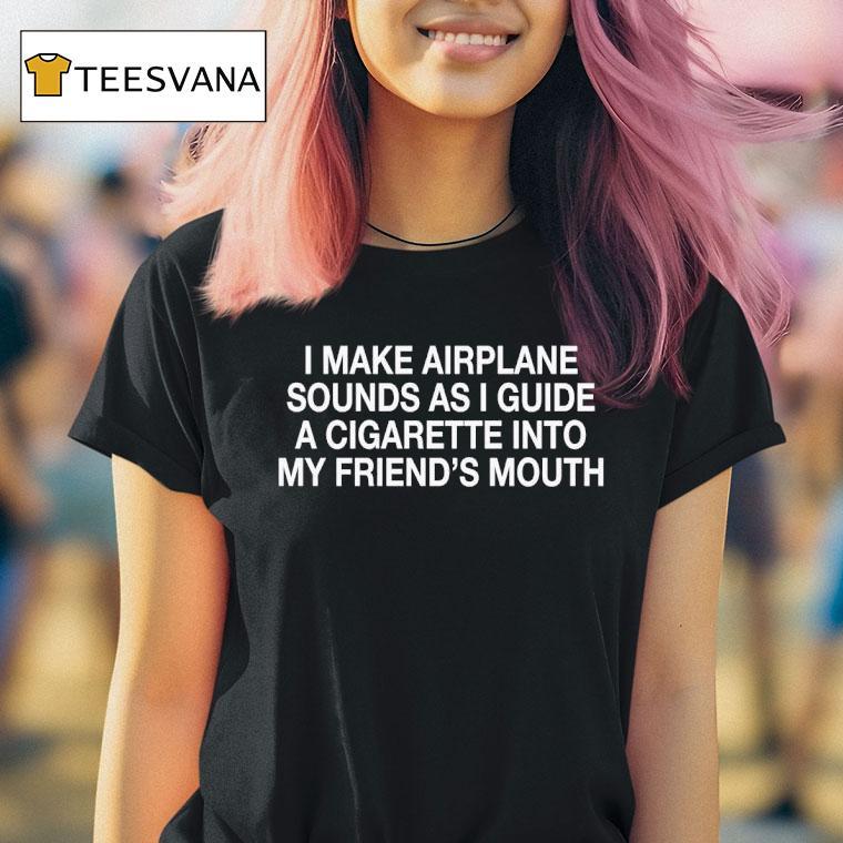 Effortless fashion update with I Make Airplane Sounds As I Guide A Cigarette Into My Friend’s Mouth Shirt, gather around and take a listen, for I am not just any ordinary smoker. With each inhale, I transform into a pilot, creating the perfect airplane sound while guiding a cigarette into my friend’s mouth. Behold, the unique and eccentric “I Make Airplane Sounds” shirt.