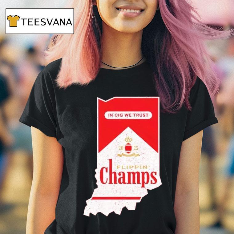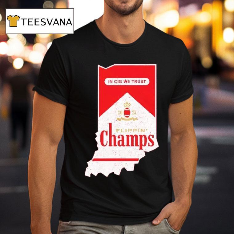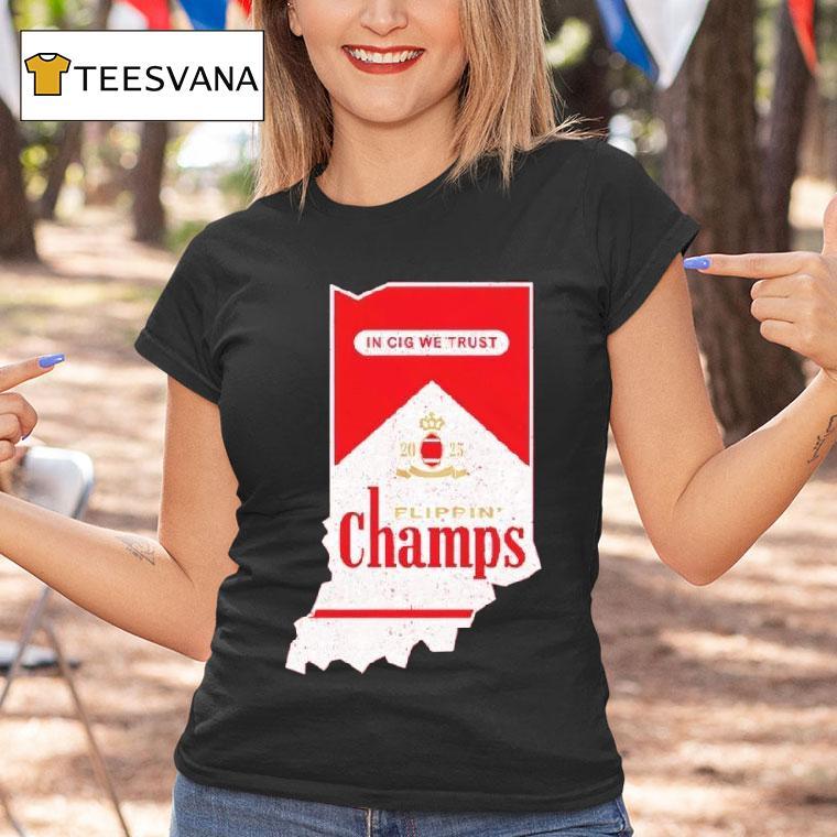 Sleek simplicity, ultimate comfort with Indiana Hoosiers Flippin’ Champs In Cig We Trust Shirt, “Brace yourselves, Hoosiers fans, because with the Indiana Hoosiers Flippin’ Champs In Cig We Trust Shirt, it’s time to show off your team pride with a side of humor. This stylish and witty shirt is the perfect way to support the reigning champions and their iconic coach, Bob Knight.”
