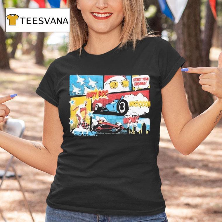 Easy-going style staple with Indianapolis Motor Speedway Indy 500 Start Your Engines Vroom Comic Strip Shirt, get ready to rev up your engines with the coolest new addition to your wardrobe – the Indianapolis Motor Speedway Indy 500 Start Your Engines Vroom Comic Strip Shirt! Featuring a fun and unique design, this shirt is a must-have for any racing fan.