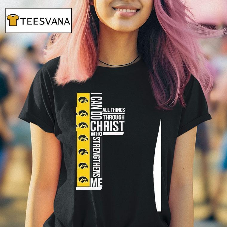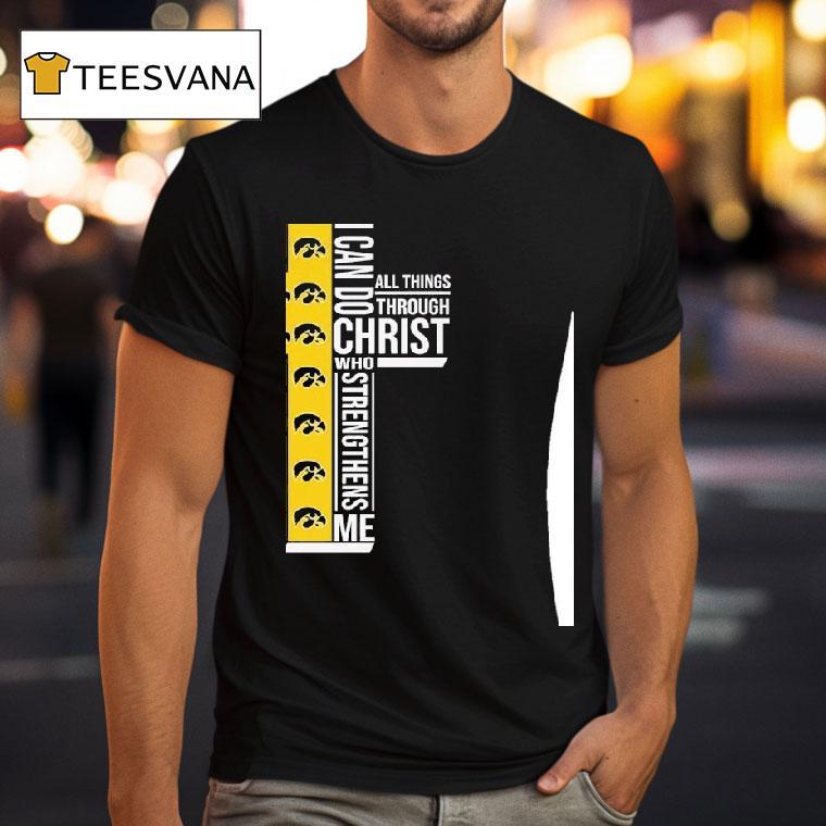Casual chic, every day with Iowa Hawkeyes I Can Do All Things Through Christ Who Strengthiens Me Shirt, if you’re a fan of the Iowa Hawkeyes, then you know that their team motto is “I Can Do All Things Through Christ Who Strengthens Me”. And now, you can show your support for the team and your faith with a stylish Hawkeyes t-shirt.