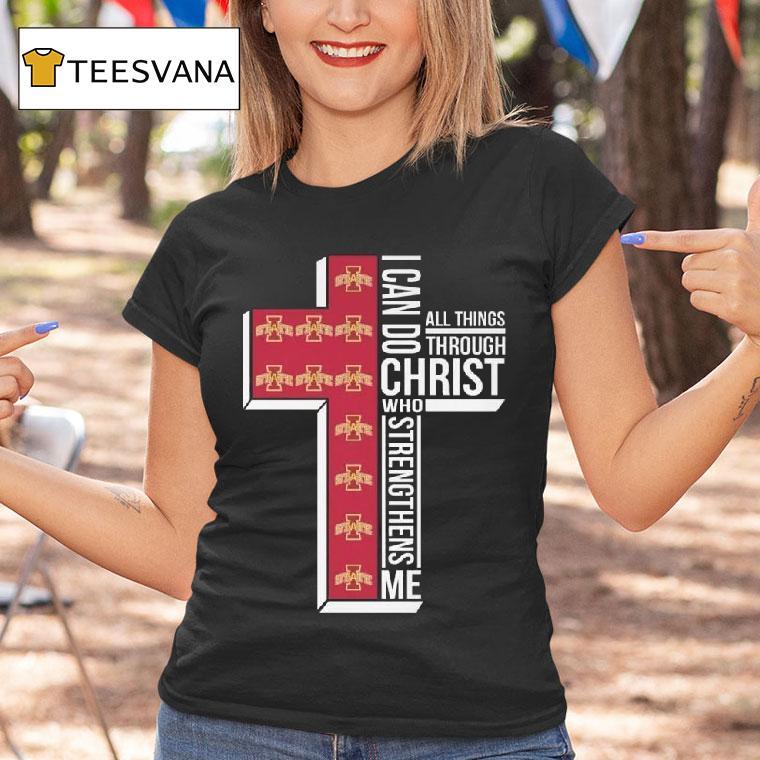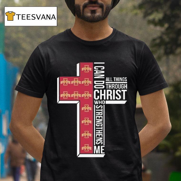 Casual flair, all occasions with Iowa State Cyclones I Can Do All Things Through Christ Who Strengthens Me Cross Shirt, “The Iowa State Cyclones have a new addition to their fan gear collection that showcases their unwavering faith. The ‘I Can Do All Things Through Christ Who Strengthens Me’ cross shirt is a bold statement of both team spirit and spiritual strength. Get ready to support your team in style!”