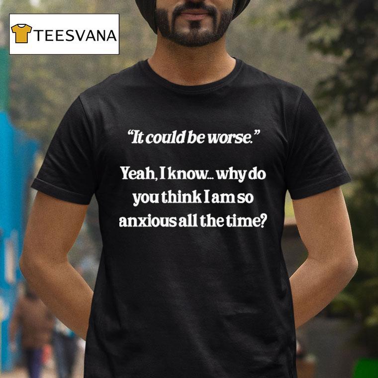 Effortless style, pure comfort with It Could Be Worse Yeah I Know Why Do You Think I Am So Anxious All The Time Shirt, it could be worse, yeah I know. But why do you think I am so anxious all the time? This shirt serves as a reminder that sometimes things can be tough, but we all have our reasons for feeling the way we do.