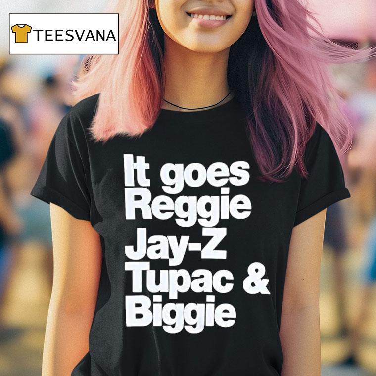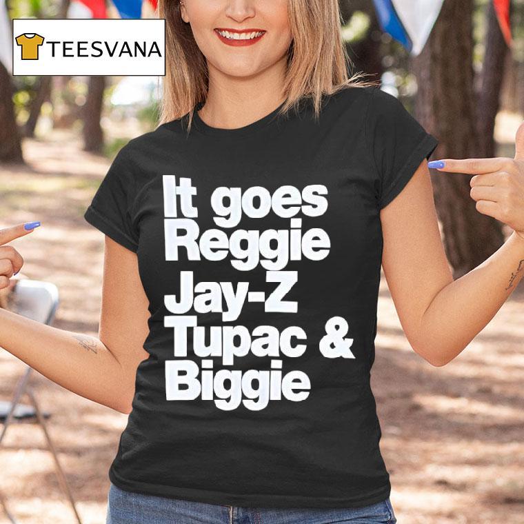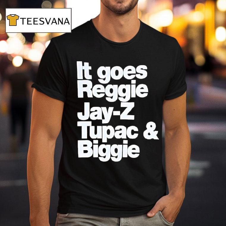 Your fashion canvas with It Goes Reggie Jay-z Tupac Biggie Shirt, reggie, Jay-Z, Tupac, and Biggie – four legendary names that have made a significant impact in the world of hip hop. These icons continue to inspire and influence generations of fans, and now, you can show your love for them by sporting the perfect “It Goes Reggie Jay-Z Tupac Biggie” shirt.