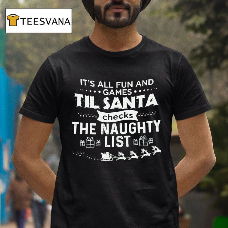 Effortless fashion update with It’s All Fun And Games ’til Santa Checks The Naughty List Shirt, as the holiday season approaches, everyone is filled with excitement and joy. But have you checked the naughty list lately? This humorous shirt reminds us that even during the most festive time of year, Santa is always watching.