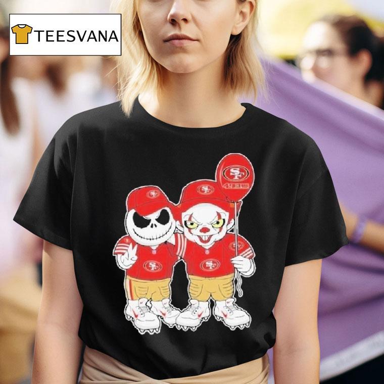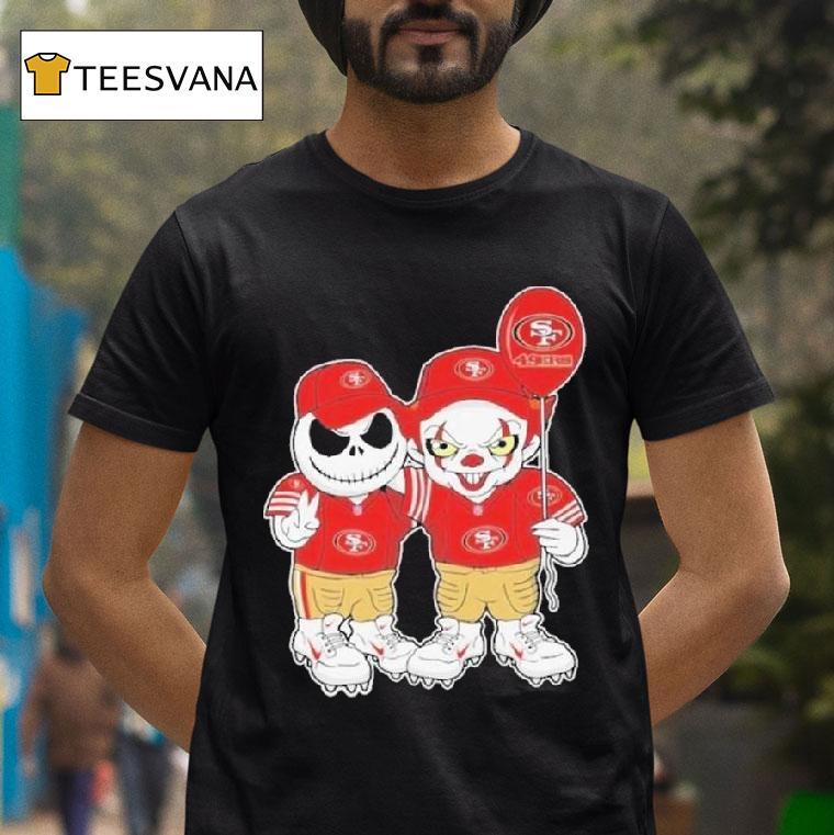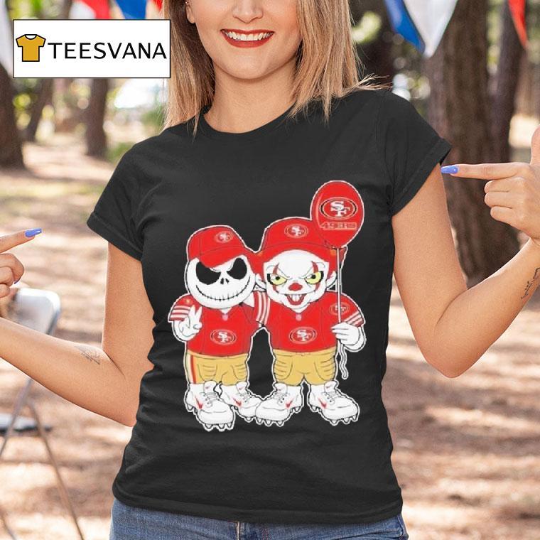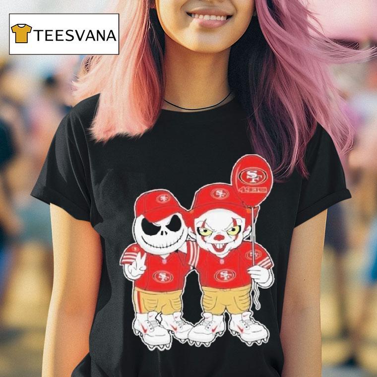 Classic tee, endless possibilities with Jack Skellington And Pennywise Balloon San Francisco 49ers Halloween Shirt, get ready for a spooktacular Halloween with the ultimate mashup of two iconic characters, Jack Skellington and Pennywise! And what better way to celebrate than with a limited edition San Francisco 49ers Halloween shirt featuring these two chilling figures on a balloon-adorned design. It’s the perfect blend of fright and football fandom!