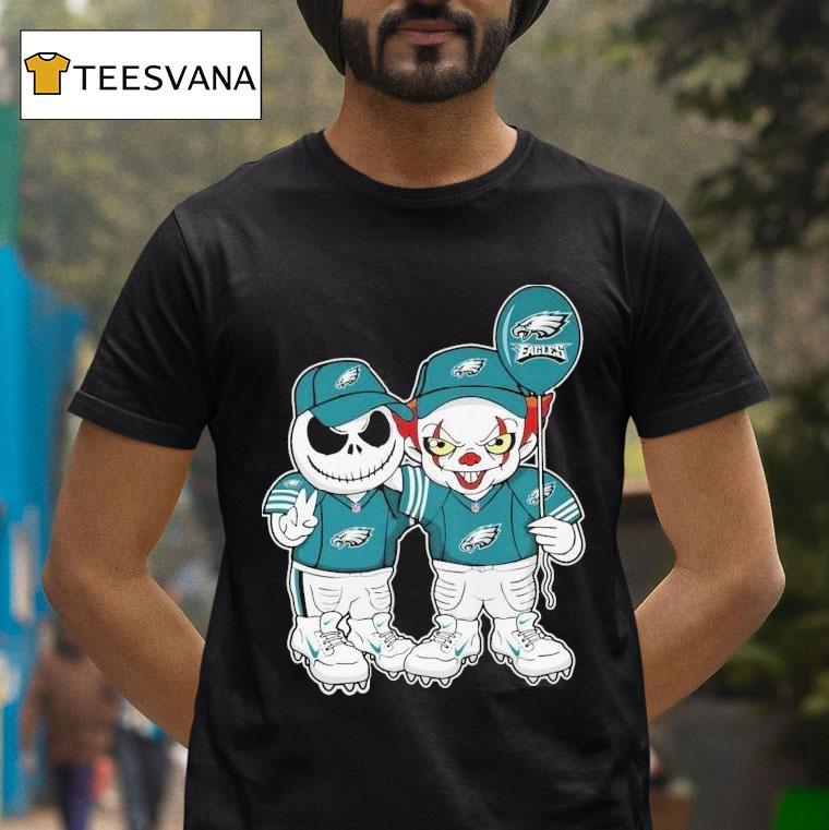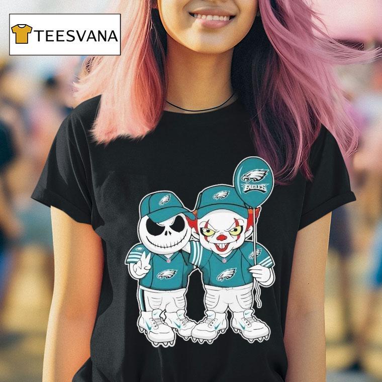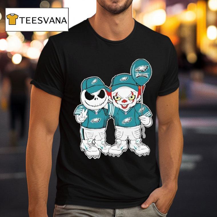 Versatile fashion at its best with Jack Skellington And Pennywise Philadelphia Eagles Philly Halloween Balloon Shirt, get ready for a spooky twist on your favorite football team with the Jack Skellington and Pennywise Philadelphia Eagles Philly Halloween Balloon Shirt! This unique and eerie design is sure to be a hit among fans of both the Eagles and Halloween. Don’t miss out on this ghoulishly awesome shirt!