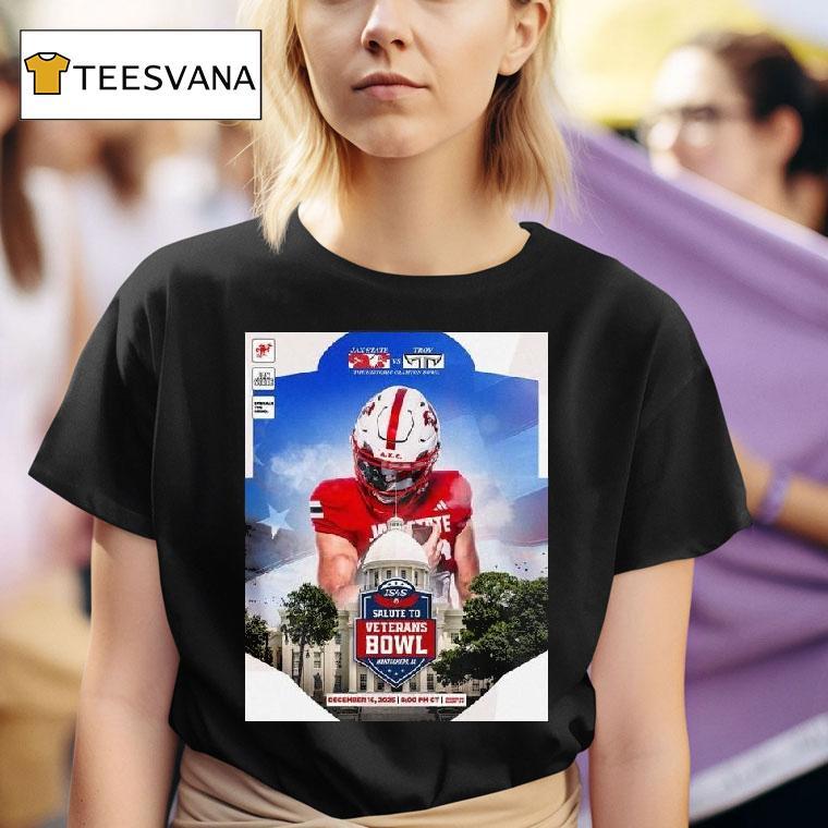 Casual cool, anytime chic with Jacksonville State Gamecocks Vs Troy Trojans Matchup 2025 Is4s Salute To Veterans Bowl On December 16 2025 Shirt, get ready for an exciting college football matchup in 2025 as the Jacksonville State Gamecocks take on the Troy Trojans at the IS4S Salute to Veterans Bowl. Don your blue and red shirts on December 16, 2025, as these two teams battle it out for glory in this anticipated showdown.