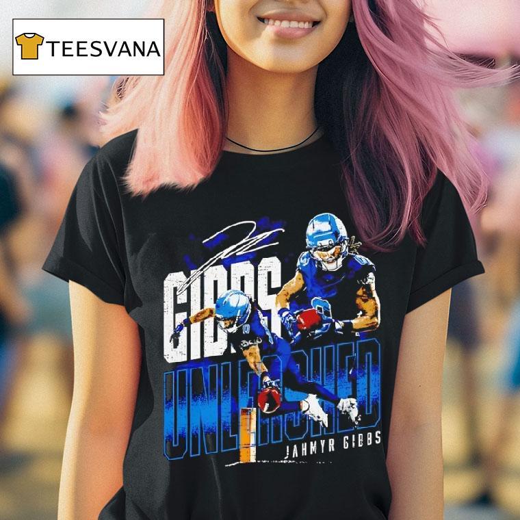 Everyday comfort redefined with Jahmyr Gibbs Detroit Lions Unleashed Signature Shirt, unleash your Detroit Lions pride with Jahmyr Gibbs’ signature shirt! Featuring the dynamic running back’s name and number, this shirt is a must-have for any true fan. Show your support for the Lions and their newest addition with this eye-catching and stylish shirt.