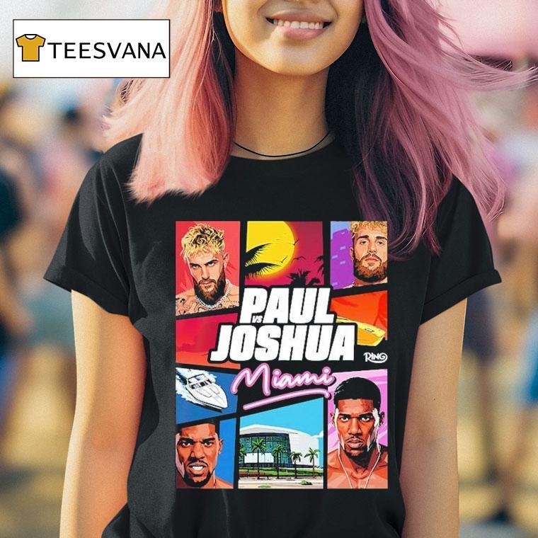 Fashion meets comfort with Jake Paul Vs Anthony Joshua Match Showdown Vice City In Miami Shirt, get ready for the ultimate showdown as Jake Paul takes on Anthony Joshua in a highly anticipated match held in the vibrant city of Miami. Show your support for your favorite fighter with the exclusive “Vice City In Miami” shirt. It’s a battle you won’t want to miss!