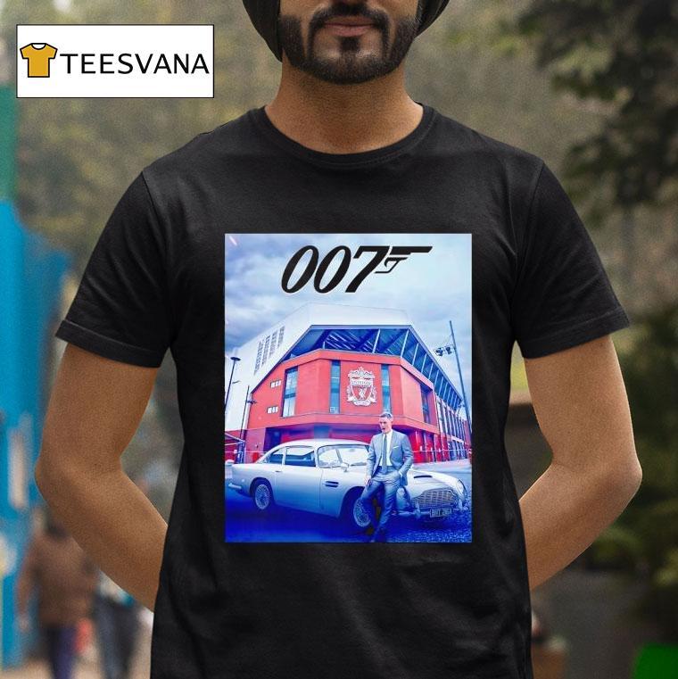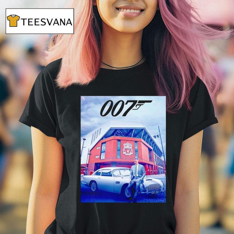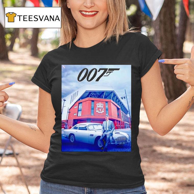 Classic tee, modern comfort with James Bond X Aston Martin Db5 007 Liverpool Stadium Shirt, introducing the ultimate fan merchandise for James Bond and Aston Martin enthusiasts – the limited edition Liverpool Stadium shirt inspired by the iconic Db5, customized with 007’s signature. Show your love for the ultimate spy and his iconic car while supporting your favorite team.
