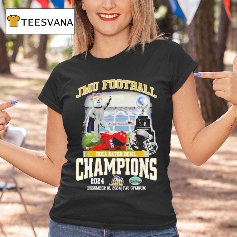 Casual chic, timeless appeal with James Madison Dukes 2024 Boca Raton Bowl Champions December 18 Fau Stadium Mascot Shirt, the James Madison Dukes made history on December 18 as they claimed the 2024 Boca Raton Bowl Championship at FAU Stadium. Excited fans proudly sported their mascot shirts, celebrating the Dukes’ impressive victory. Let’s take a look at how the team conquered the field to become champions.