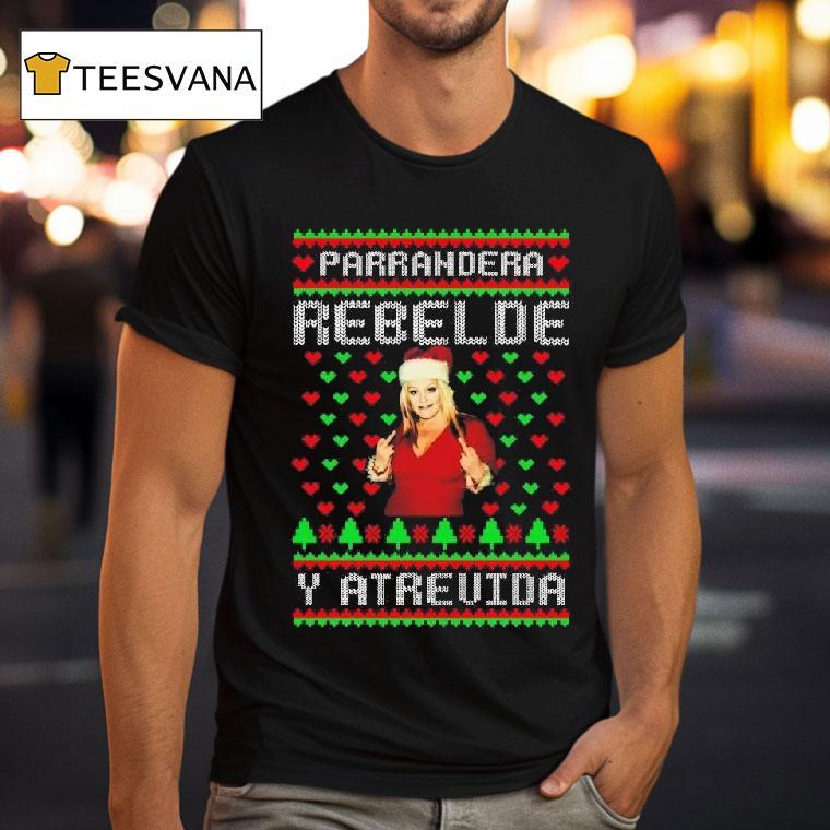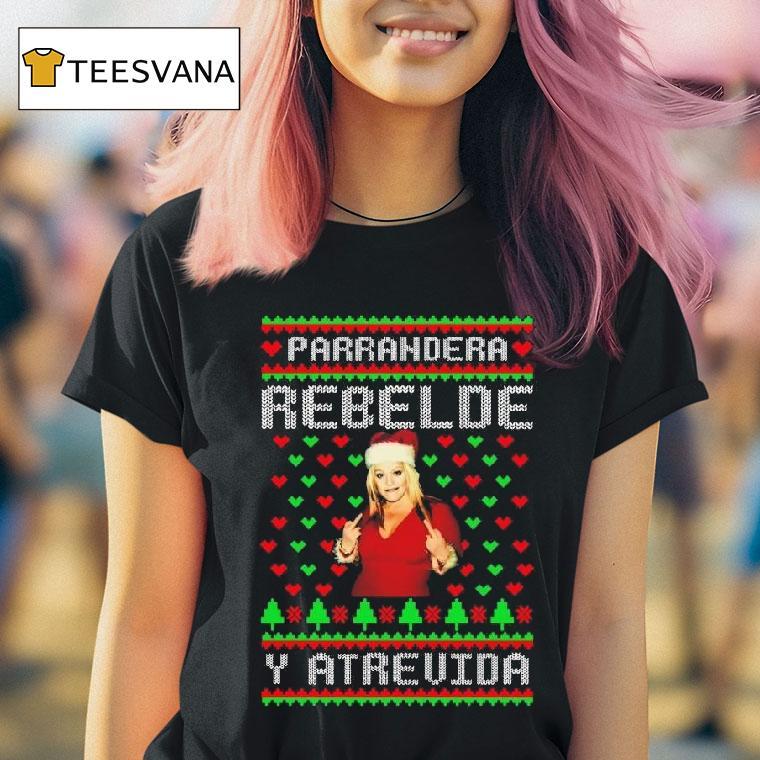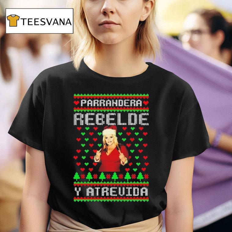 Classic tee, modern twist with Jenni Rivera Parrandera Y Atrevida Ugly Christmas Shirt, get ready to spice up your holiday wardrobe with the latest fashion trend inspired by the late Jenni Rivera. The Jenni Rivera Parrandera Y Atrevida Ugly Christmas Shirt is a must-have for any fan, featuring bold prints and festive colors that will make you stand out at any holiday party.