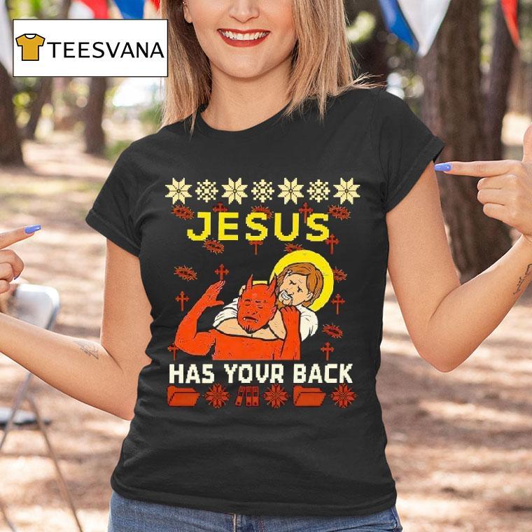 Comfortable fashion choice with Jesus Has Your Back Funny Christmas Ugly Shirt, looking to add a touch of humor to your holiday wardrobe? Look no further than this Jesus Has Your Back Funny Christmas Ugly Shirt! Spread some festive cheer and let everyone know who’s got your back this holiday season.