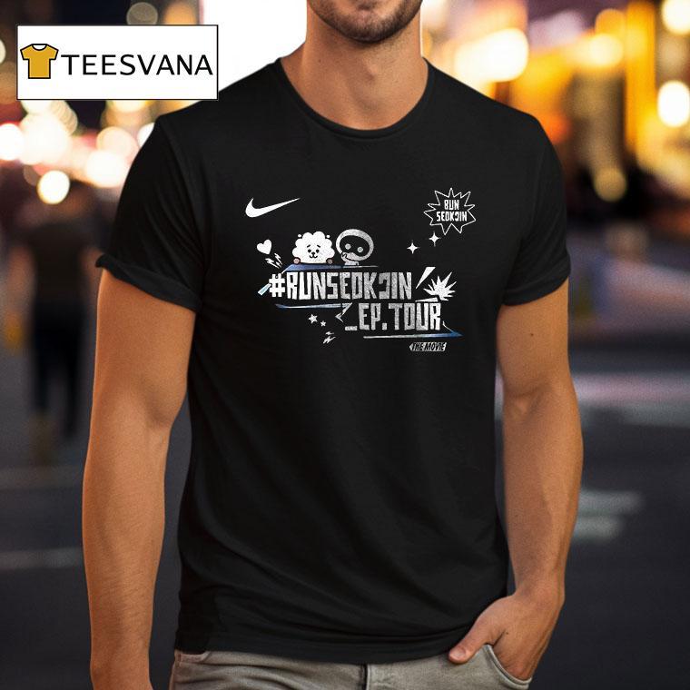 Casual sophistication with Jin Runseokjin Ep Tour The Movie Name And Number Signature Shirt, “BTS fans, get ready for the ultimate experience! Jin’s Runseokjin Ep Tour comes to life on the big screen with The Movie Name and Number Signature Shirt. Immerse yourself in the electrifying performances of this K-pop superstar and take home a piece of history with this exclusive merchandise.”