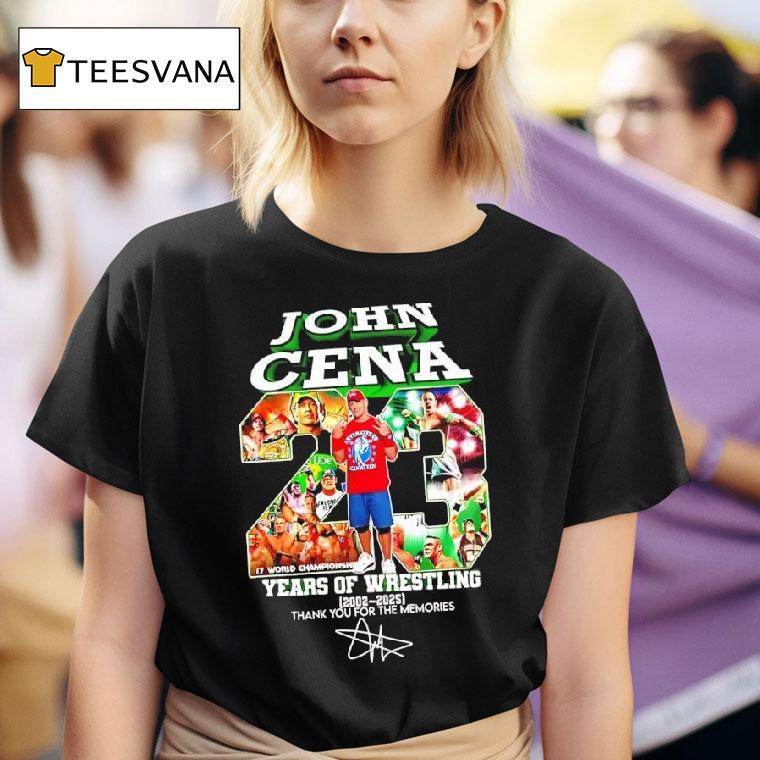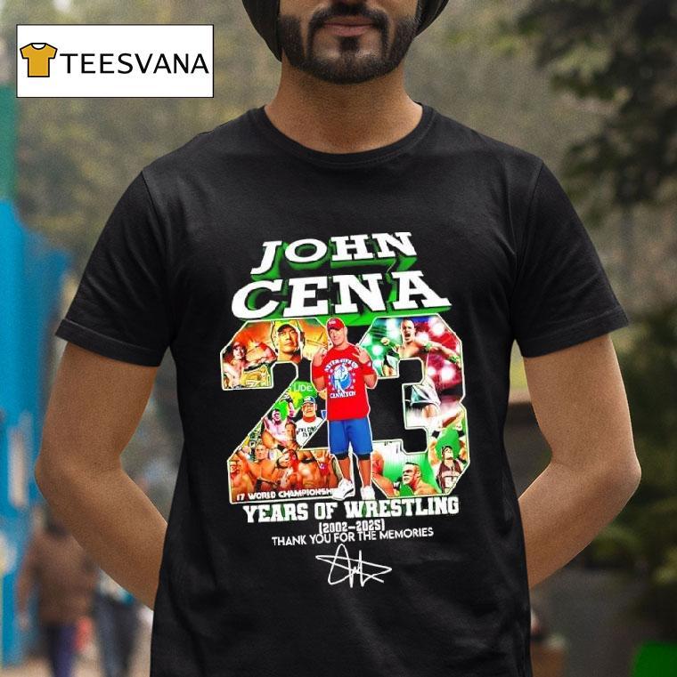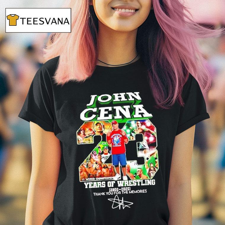 Style that stands out with John Cena 23 Years Of Wwe 2002 2025 Never Give Up Signature Shirt, for over two decades, John Cena has been a mainstay in the WWE, entertaining fans with his electrifying in-ring performances and inspiring message of “never give up”. To commemorate his 23 years in the industry, Cena has released his iconic ‘Never Give Up’ signature shirt, a powerful symbol of his enduring legacy.