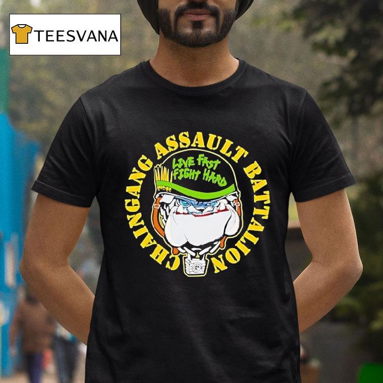 Simple yet versatile fashion with John Cena Bulldogs Live Fast Fight Hard Chaingang Assault Battalion Shirt, get ready to rumble with the latest addition to John Cena’s merchandise line – the Bulldogs Live Fast Fight Hard Chaingang Assault Battalion shirt. Show off your fierce and unbreakable spirit with this bold design, inspired by Cena’s signature motto of never giving up.