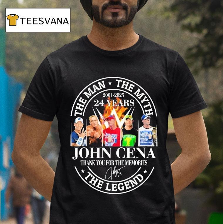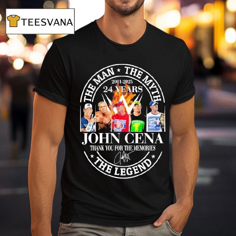 Wearable simplicity, unmatched comfort with John Cena The Man The Myth The Legend 2001 2025 24 Years Thank You For The Memories Shirt, john Cena has been a household name for over two decades, captivating audiences with his charisma, athleticism, and larger-than-life persona. From his debut in 2001 to his final appearance in 2025, he has been a constant presence in the world of entertainment. Let’s celebrate his legacy with the iconic “Thank You For The Memories” shirt.