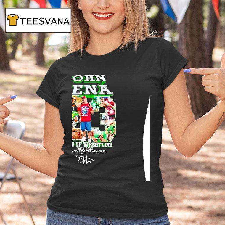 Dress it up, dress it down with John Cena Years Of Wrestling 2002 2025 Thank You For The Memories Signature Shirt, for nearly two decades, John Cena has been a mainstay in the world of professional wrestling. From his debut in 2002 to his recent appearances in 2025, he has left an indelible mark on the industry. Let’s take a moment to appreciate his legacy and the iconic “Thank You For The Memories” signature shirt.