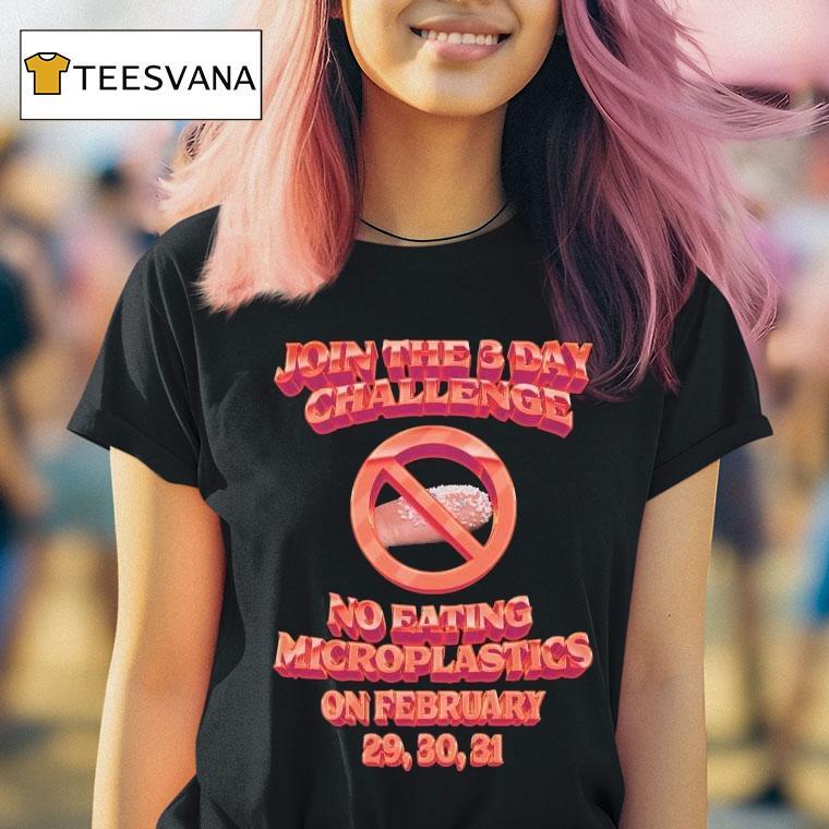 Your fashion canvas with Join The 3 Day No Microplastics Challenge No Eating Microplastics On February 29 30 31 Shirt, join the movement towards a cleaner and healthier world with the 3 Day No Microplastics Challenge. Say no to eating microplastics and show your support on February 29, 30, and 31 by wearing the exclusive shirt. Let’s make a difference together!