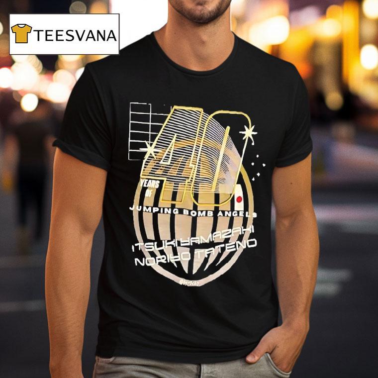 Chic minimalism, everyday wear with Jumping Bomb Angels Itsuki Yamazaki And Noriyo Tateno 40th Anniversary Shirt, this year marks the 40th anniversary of the iconic tag team duo, Jumping Bomb Angels: Itsuki Yamazaki and Noriyo Tateno. These fierce female wrestlers took the world by storm with their high-flying moves and unbreakable bond. Celebrate their legacy with an exclusive 40th anniversary shirt honoring their trailblazing career.