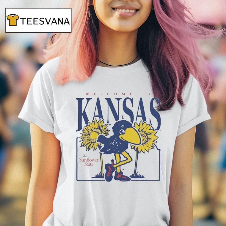 Wearable simplicity, unmatched comfort with Kansas Jayhawks Welcome To Kansas The Sunflower State Shirt, welcome to the home of the Kansas Jayhawks! Show your pride for the Sunflower State with this stylish shirt. From the fields of wheat to the iconic Jayhawk mascot, this shirt represents the heart and spirit of Kansas. Wear it with pride wherever you go.