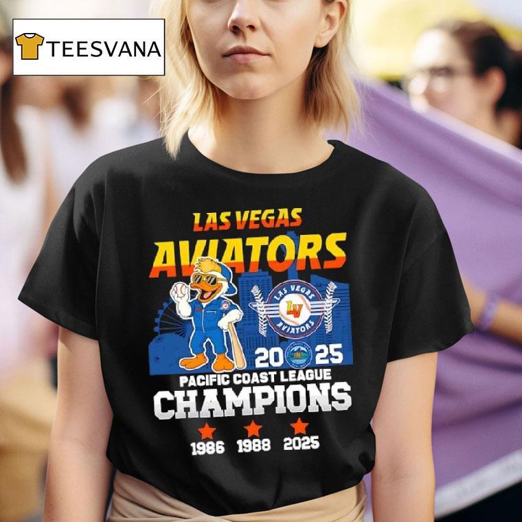 Wardrobe essential, always with Las Vegas Aviators Baseball 2025 Pacific Coast League Champions Mascot Logo Shirt, welcome to the future of baseball in Las Vegas! The Aviators have soared to victory as the 2025 Pacific Coast League Champions and their iconic mascot logo is now proudly emblazoned on shirts everywhere. Join the winning team and show your support with the latest must-have merchandise.