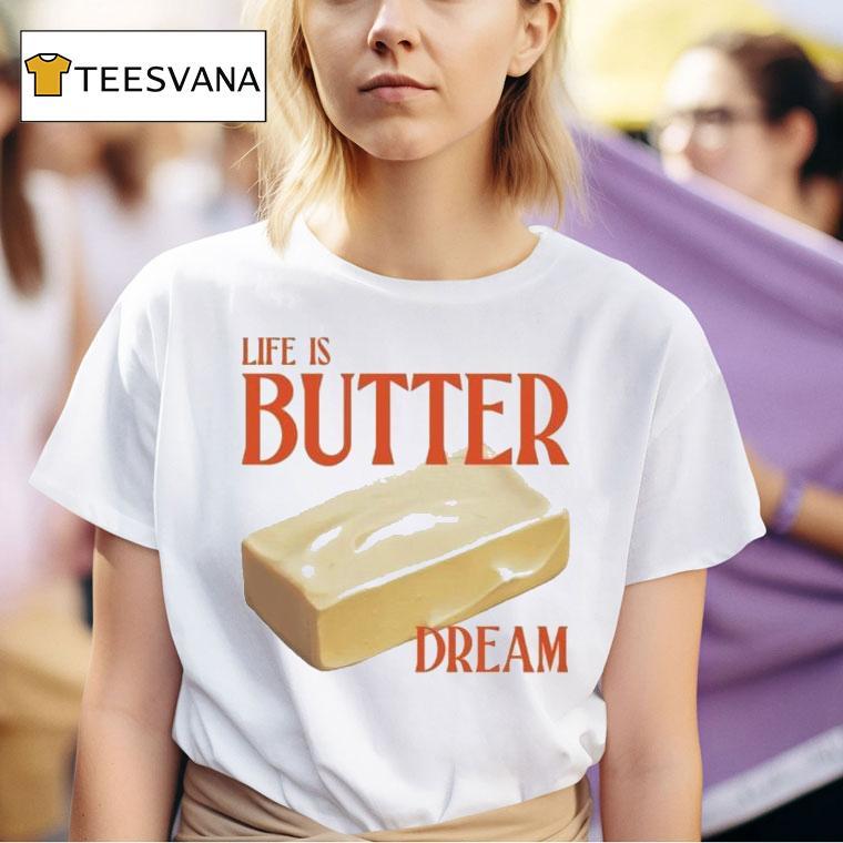 Effortless fashion update with Life Is Butter Dream Shirt, “Unlock the power of positivity with our Life is Butter Dream shirt. Embrace the silky smoothness of life and spread joy wherever you go. Let this uplifting shirt be a reminder to dream big and live life to the fullest. Get yours now!”