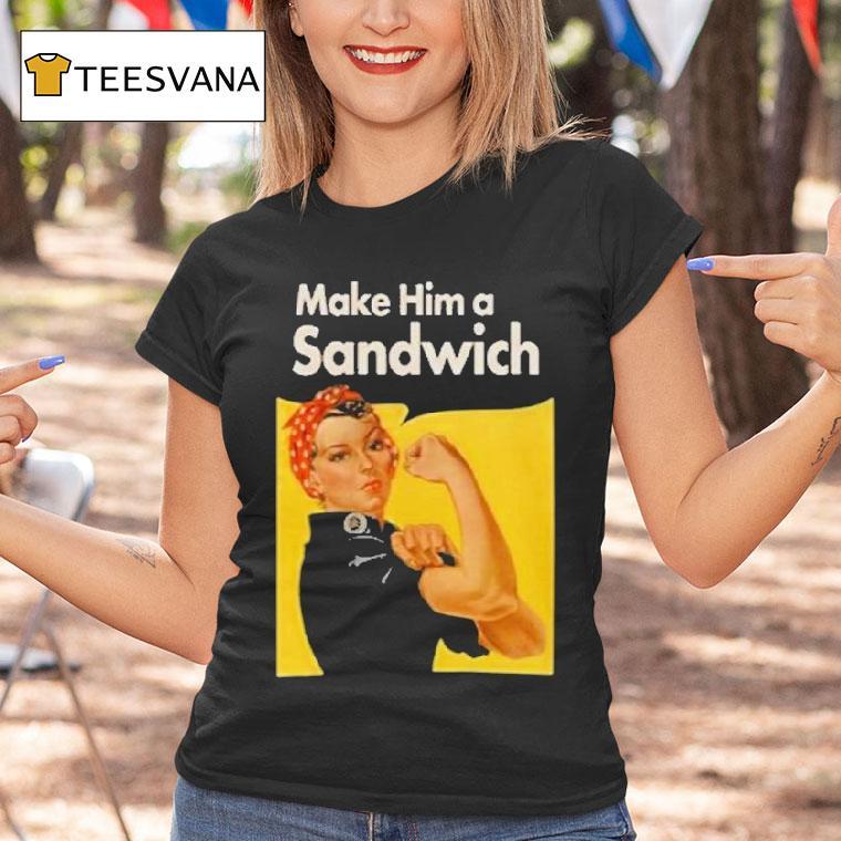 Casual elegance, always with Make Him A Sandwich Propaganda Shirt, introducing the ultimate gift for the sandwich-loving man in your life – the Make Him A Sandwich Propaganda Shirt. This unique and hilarious t-shirt is guaranteed to bring a smile to his face and become his new favorite item in his wardrobe.