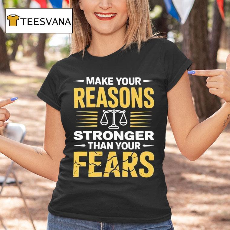 Soft, breathable, and stylish with Make Your Reasons Stronger Than Your Fears Shirt, looking for a way to conquer your fears? Look no further than the “Make Your Reasons Stronger Than Your Fears” shirt. This empowering phrase will remind you to always push past your doubts and believe in yourself. Get yours today and face your fears with confidence!