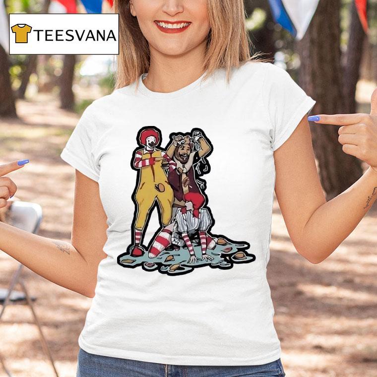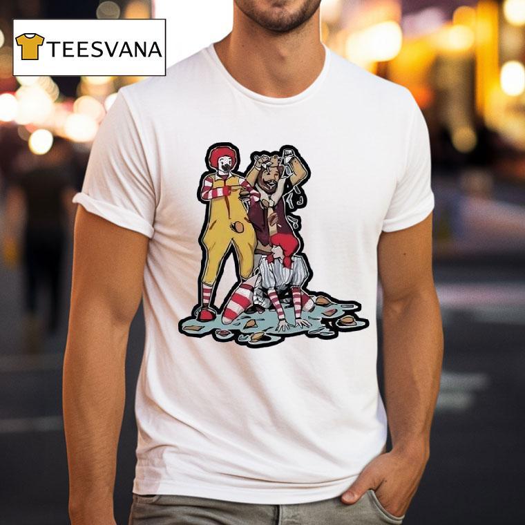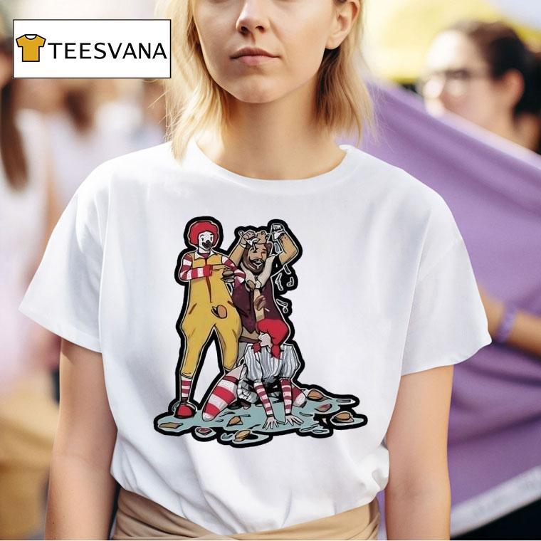 Staple piece, endless possibilities with Mcdonald’s And Burger King Mascots In A Humorous Club Parody Shirt, “Get ready to add some sizzle to your wardrobe with this hilarious club parody shirt featuring the iconic mascots of McDonald’s and Burger King. This side-splitting design is sure to be a hit with fast food lovers and partygoers alike. Grab yours now and join the fun!”