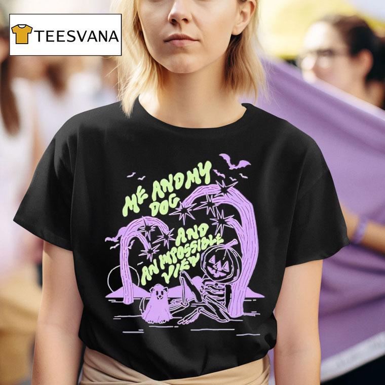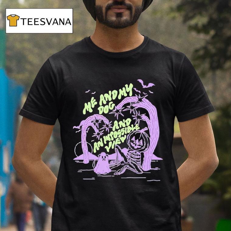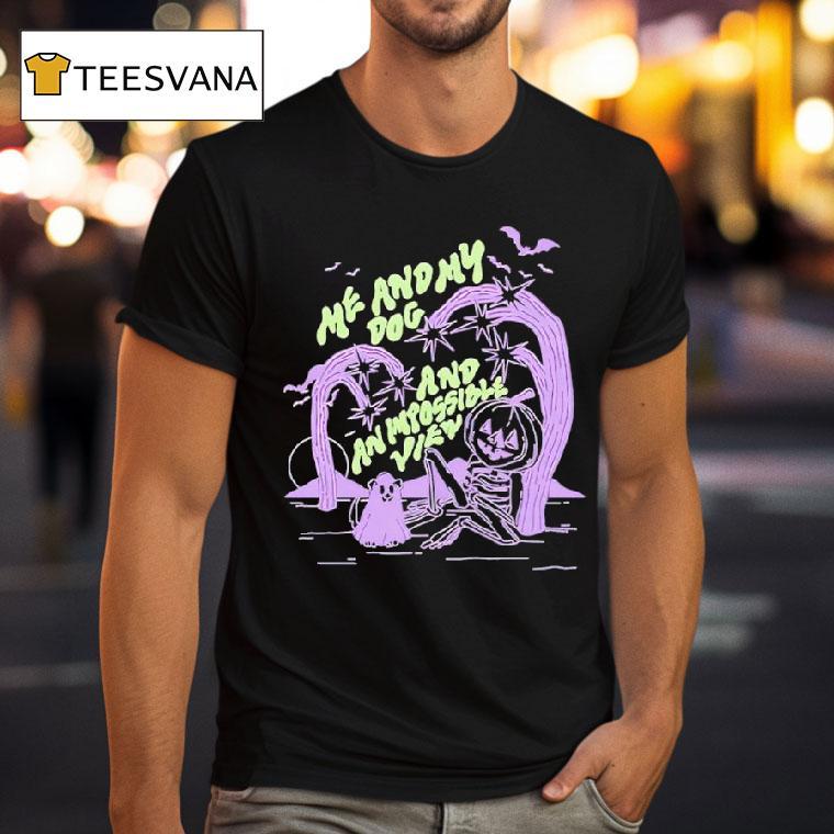 Comfortable fashion choice with Me And My Dog And An Impossible View Halloween Shirt, “Meet me and my dog as we go on a spooky adventure on Halloween night, dressed in our matching ‘Impossible View’ shirts. With a breathtaking view and a loyal companion by my side, this will be a memorable Halloween like no other.”
