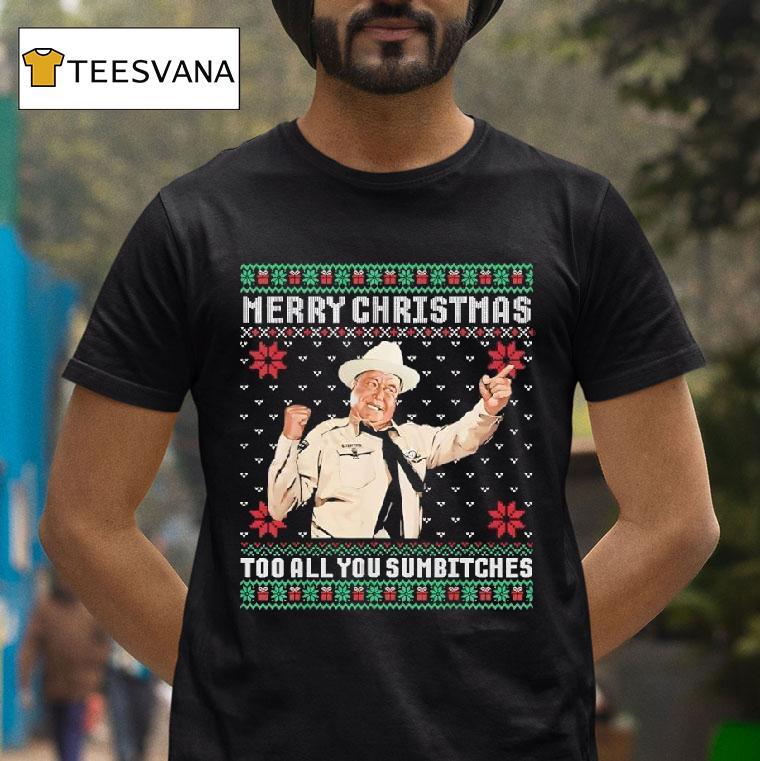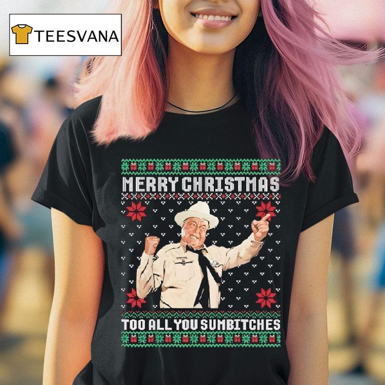 Chic and comfortable with Merry Christmas Too All You Sumbitches Ugly Shirt, merry Christmas to all you sumbitches! Get ready for the holiday season with our collection of ugly Christmas shirts. Spread some holiday cheer and make a bold statement with our unique and humorous designs. Perfect for ugly sweater parties and family gatherings. Shop now and be the life of the party!