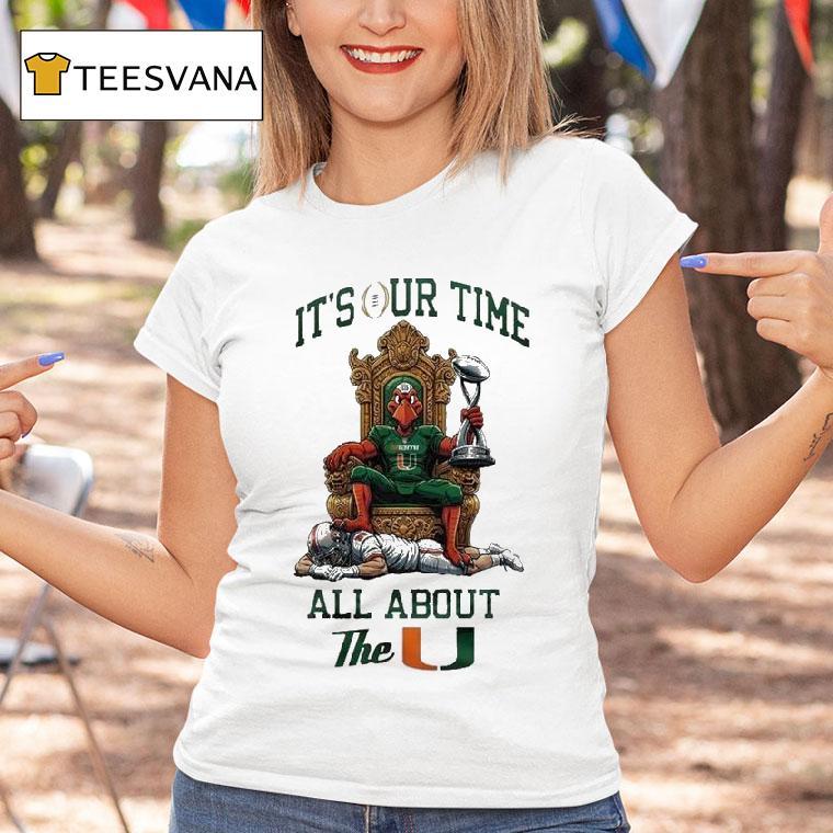 Chic minimalism, always with Miami Hurricanes It’s Our Time All About The U Ncaa 2025-2026 Cotton Bowl Champions Cfp Throne Mascot Trophy Shirt, welcome to the ultimate celebration of the Miami Hurricanes, as we relish in their victorious rise to the 2025-2026 Cotton Bowl Championship and claim their rightful spot on the CFP throne. Join us as we bask in the glory of the U, proudly donning our mascot trophy shirt. It’s our time.