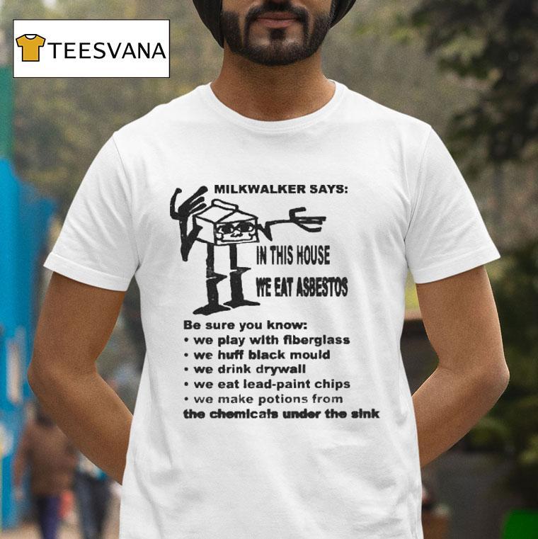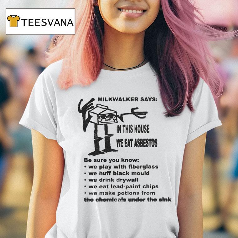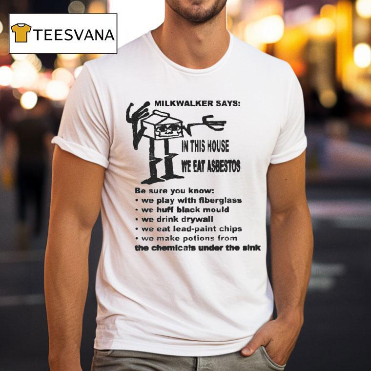 Style that suits you with Milkwalker Says In This House We Eat Asbestos Shirt, milkwalker’s infamous catchphrase, “In this house we eat asbestos shirt,” has taken the internet by storm. This quirky and unconventional statement has sparked curiosity and controversy. In this article, we delve deeper into the meaning behind Milkwalker’s words and the story behind the iconic shirt.