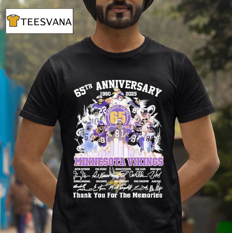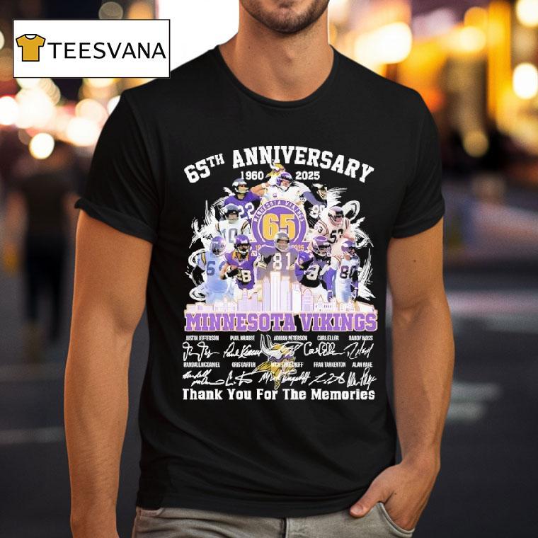 Wear it, love it, repeat with Minnesota Vikings Thank You For The Memories 65th Anniversary 1960 2025 Shirt, for over six decades, the Minnesota Vikings have been a beloved team in the world of professional football. As they celebrate their 65th anniversary in 2025, we take a look back at their journey and thank them for the countless memories they have given fans with their iconic “Thank You For The Memories” shirt.
