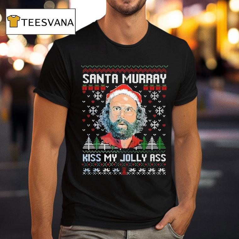 Wardrobe must-have with Murray Hawkins Santa Murray Kiss My Jolly Ass Shirt, get ready for a dose of humor and holiday spirit with the Murray Hawkins Santa Murray Kiss My Jolly Ass Shirt. This quirky and playful shirt features a festive design that will surely make you the life of any Christmas party. Spread some cheer while wearing this fun and unique shirt.