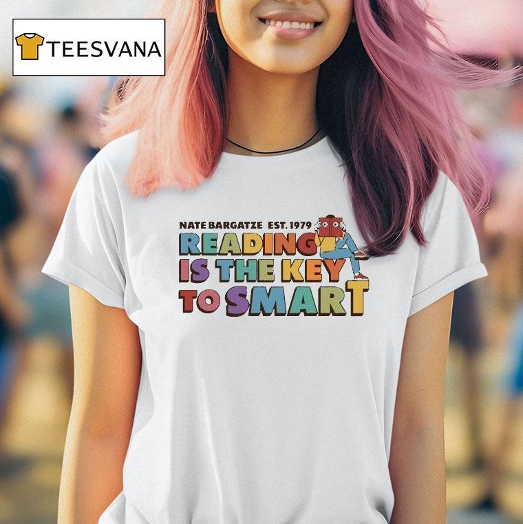 Wear it, love it, repeat with Nate Bargatze Reading Is The Key To Smart Est 1979 Shirt, discover the power of reading with the Nate Bargatze Reading Is The Key To Smart Est 1979 Shirt. A subtle yet stylish way to show your love for literature and support for comedian Nate Bargatze. Unlock your mind and make a statement with this unique t-shirt.