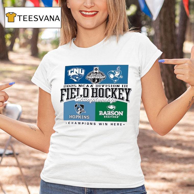 Classic tee, modern twist with Ncaa Division Iii Field Hockey Championship 2025 Champions Win Here Four Team Logos Shirt, in the year 2025, all eyes were on the NCAA Division III Field Hockey Championship as four talented teams battled for the ultimate prize. After an intense tournament, one team emerged victorious and proudly displayed their achievement on the coveted “Champions Win Here” shirt, adorned with the four team logos.