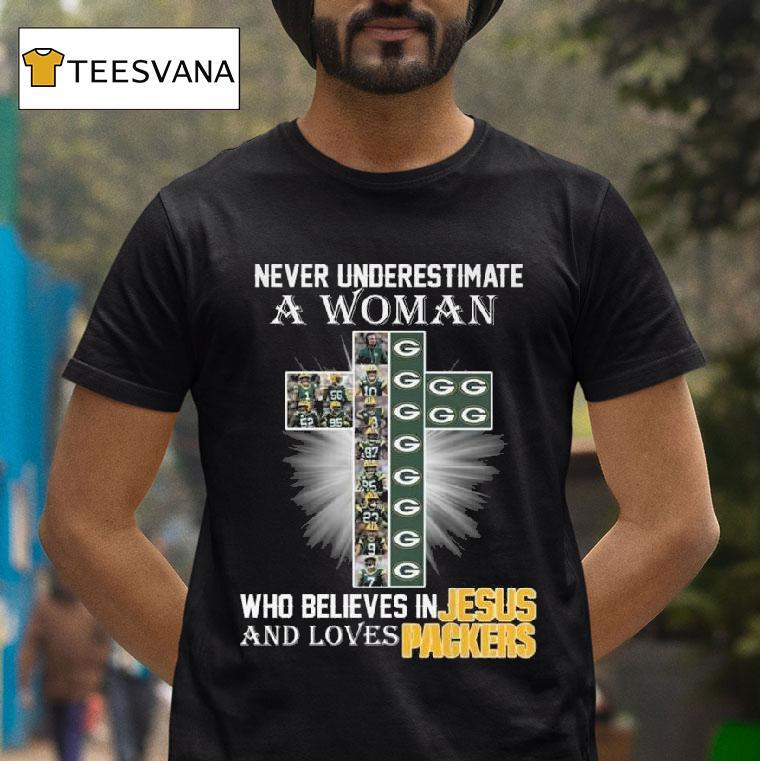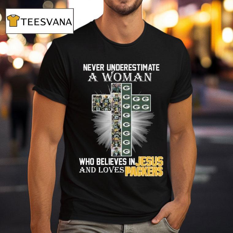 Your style, your signature with Never Underestimate A Woman Who Believes In Jesus And Loves Green Bay Packers 2025 Shirt, “Don’t let her gentle demeanor and love for the Green Bay Packers fool you. This woman has a fierce faith in Jesus and an unwavering passion for her team. Her 2025 shirt proudly proclaims her devotion, and you should never underestimate the strength behind it.”