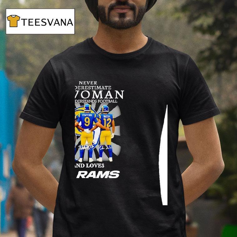Chic basics, maximum impact with Never Underestimate A Woman Who Understands Football And Loves Los Angeles Rams Signatures Shirt, don’t let her love for fashion and knowledge of football fool you, a woman who understands the game and supports the Los Angeles Rams with her signature shirt is a force to be reckoned with. Never underestimate her passion and loyalty, on and off the field.