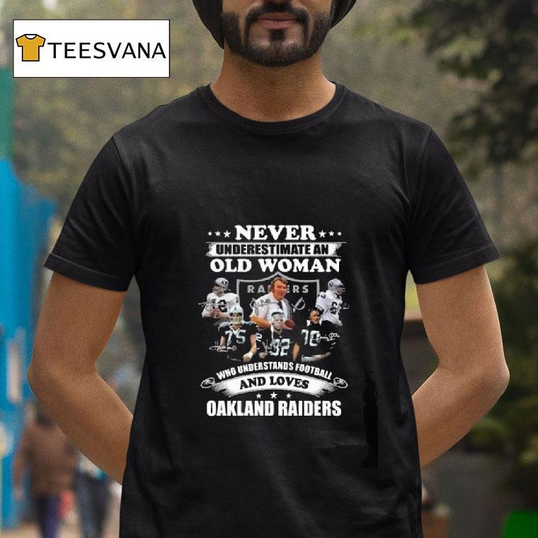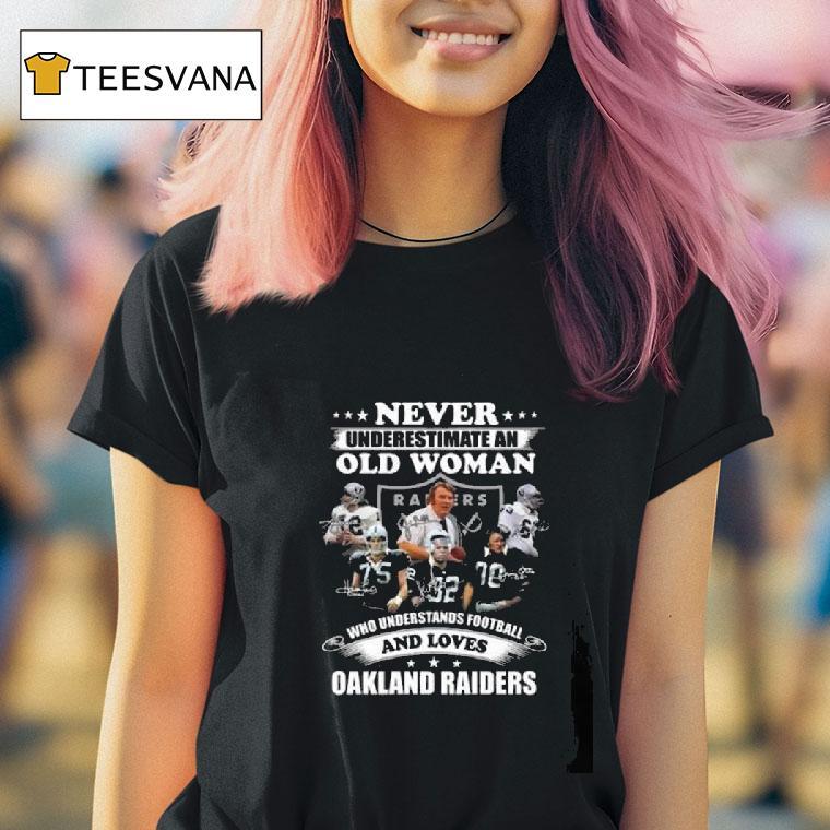 Wearable simplicity, unmatched comfort with Never Underestimate An Old Woman Who Understands Football And Loves Oakland Raiders Signatures Shirt, don’t judge a book by its cover, especially when it comes to an old woman who knows her football and loves the Oakland Raiders. This underestimated lady isn’t just a fan, she’s a die-hard supporter with her very own Oakland Raiders signature shirt. Let’s not underestimate her passion.