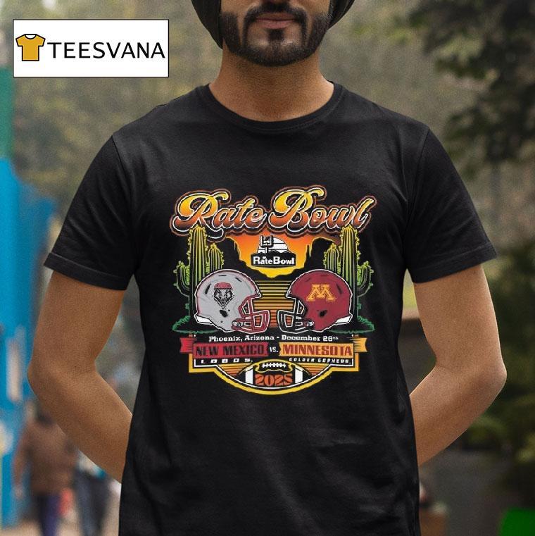 Everyday luxury, casual charm with New Mexico Lobos Vs Minnesota Golden Gophers Horizon Matchup Football 2025 Rate Bowl Helmet Shirt, get ready for an epic showdown as the New Mexico Lobos take on the Minnesota Golden Gophers in the highly anticipated Horizon Matchup Football game in 2025. With both teams sporting top-notch talent and gear, this Rate Bowl battle promises to be a thrilling display of strength and skill.