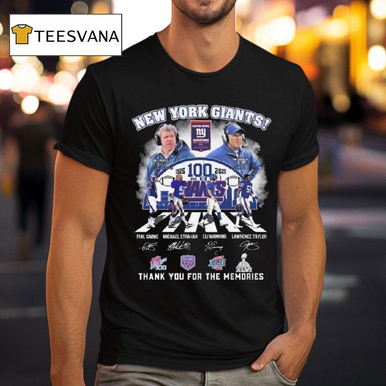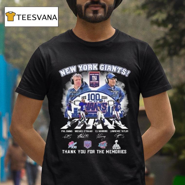 Classic tee, modern comfort with New York Giants 100th 1925-2025 Thank You For The Memories Players Abbey Road Signatures Vintage Shirt, the New York Giants are celebrating a monumental milestone as they reach their 100th season in the NFL. From their humble beginnings in 1925 to present day, the Giants have left an unforgettable mark on the football world. As a token of appreciation, players donning the iconic Abbey Road signatures vintage shirt thank their loyal fans for the cherished memories.