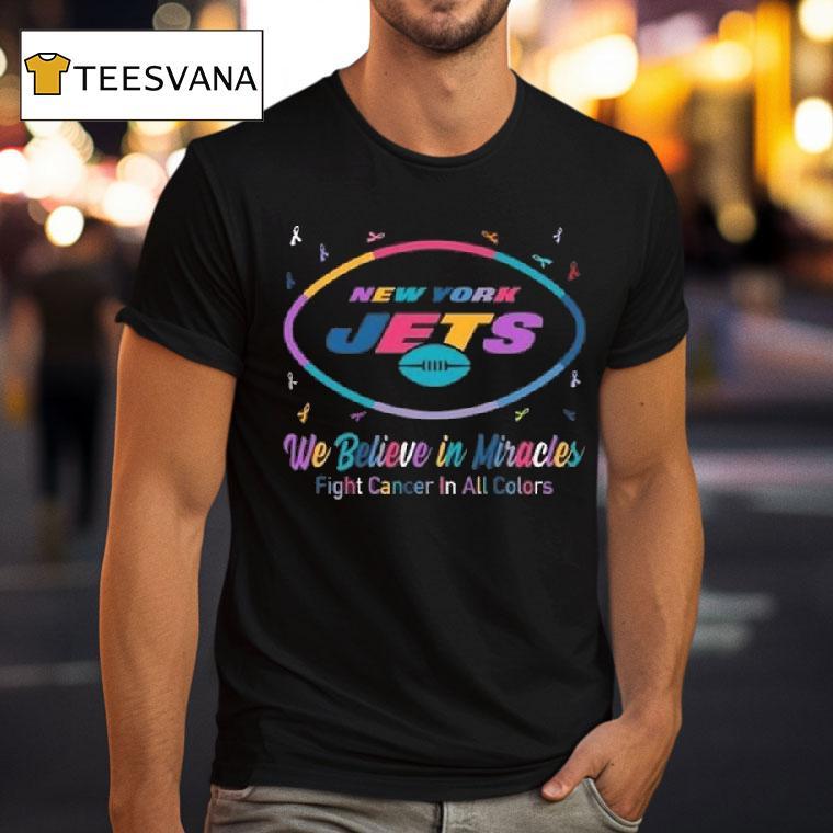 Wear it your way with New York Jets We Believe In Miracles Fight Cancer In All Colors Shirt, as the official team of the Big Apple, the New York Jets have always been known for their tenacity and determination. But now, they are taking their fight to a whole new level by teaming up with the American Cancer Society and proudly wearing their “We Believe in Miracles Fight Cancer in All Colors” shirt.