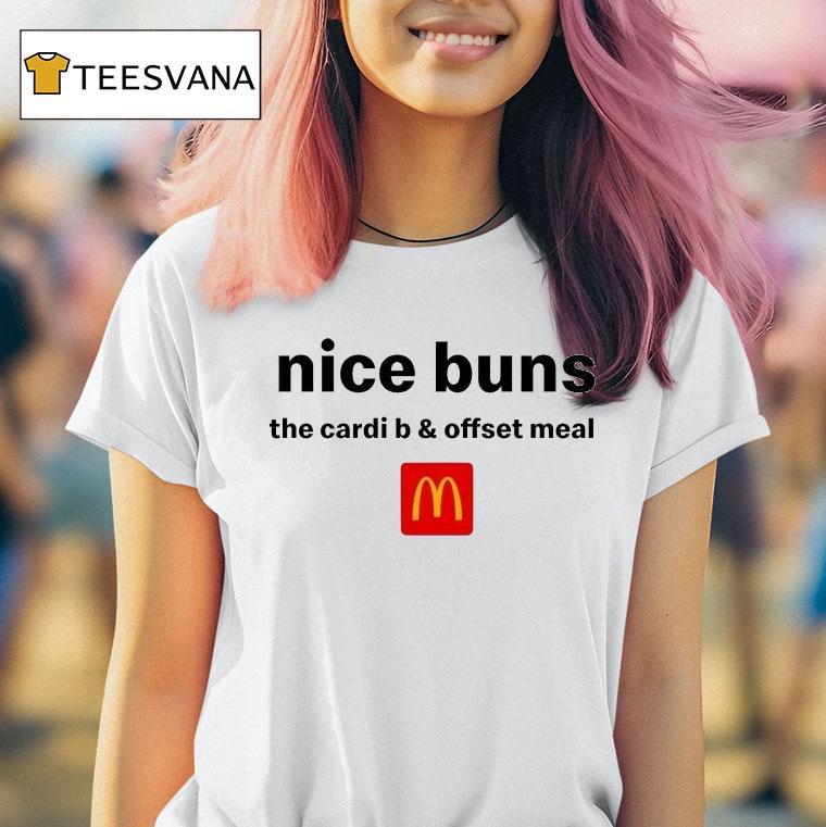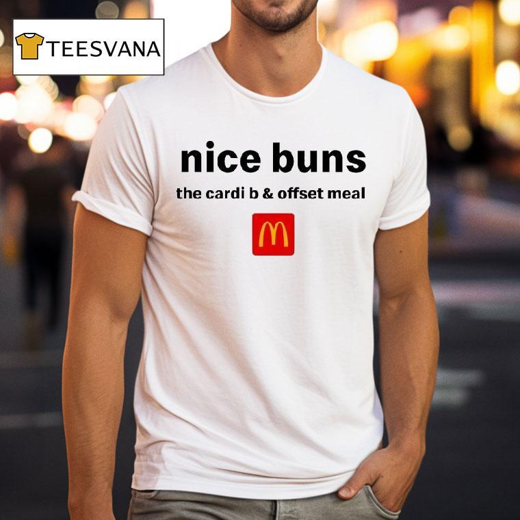Casual cool, anytime wear with Nice Buns The Cardi B Offset Meal Mcdonald’s Shirt, get ready to chow down on some delicious fast food and show off your love for hip hop couple Cardi B and Offset with the new McDonald’s Nice Buns meal and exclusive t-shirt. This limited edition collaboration is sure to satisfy both your cravings and your fashion sense.